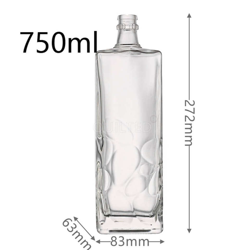 Carré En Relief Créatif En Gros Rectangulaire 700ml Super Flint Vodka Liqueur Bouteille Bouteilles De Whisky En Verre Avec Bouchon De Liège