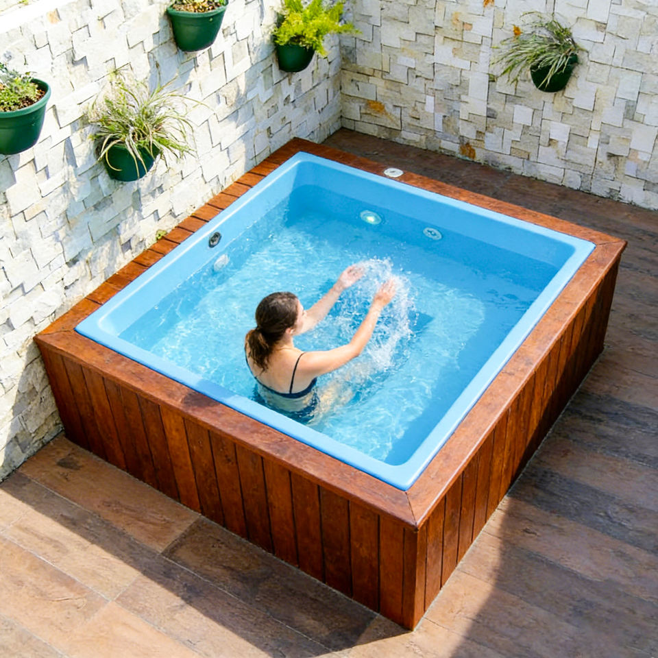 Piscine carrée en fibre de verre pour jardin avec siège intégré pour la détente à domicile, piscine hors sol, spa extérieur