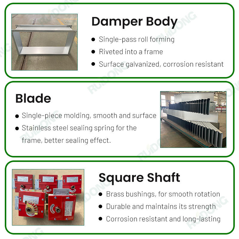 Amortisseur de feu carré pour conduit de cvc, fumée électrique ou amortisseur de feu motorisé