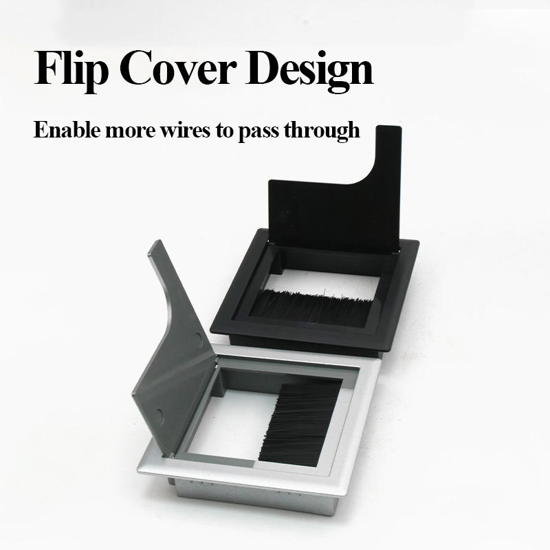 Œillets de câble carrés en plastique rabattables avec brosse pour bureau à domicile, hôtel, hôpital, appartement, ordinateur