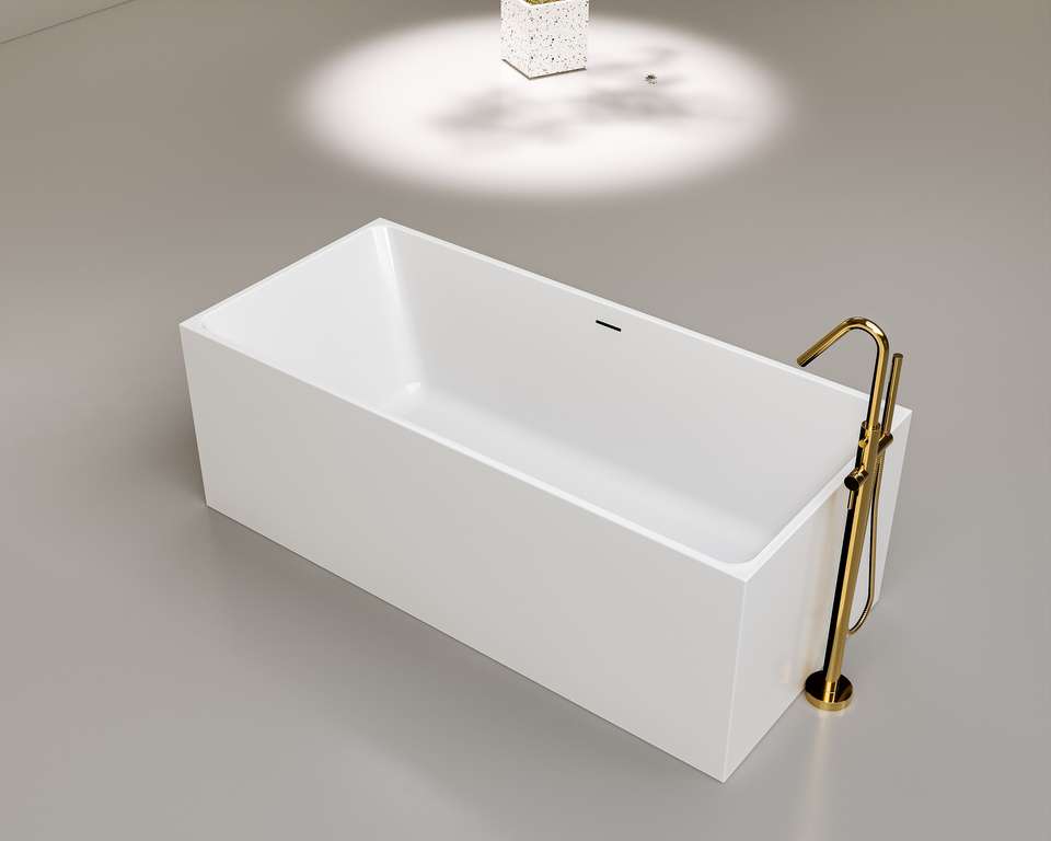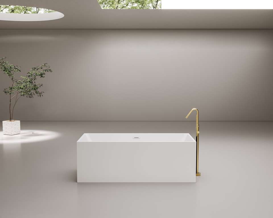 Baignoire carrée autoportante à bord étroit, baignoire moderne aux lignes droites, baignoire à remous pour immersion profonde