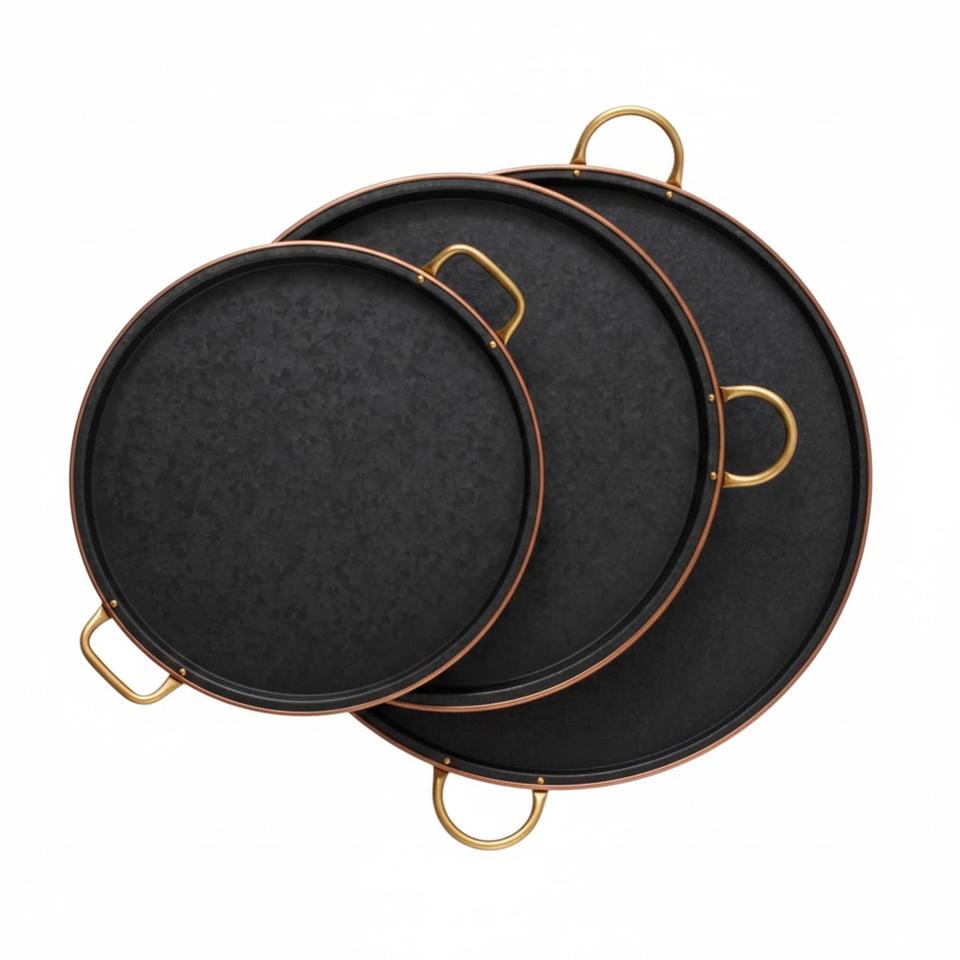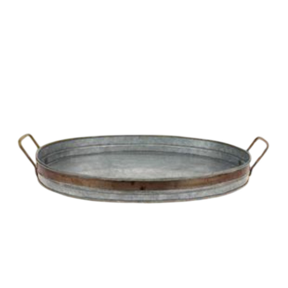 Plateau de service carré en métal galvanisé avec poignées en bois, plateau rustique en fer de haute qualité pour bar et desserts, pour usage domestique et en restaurant