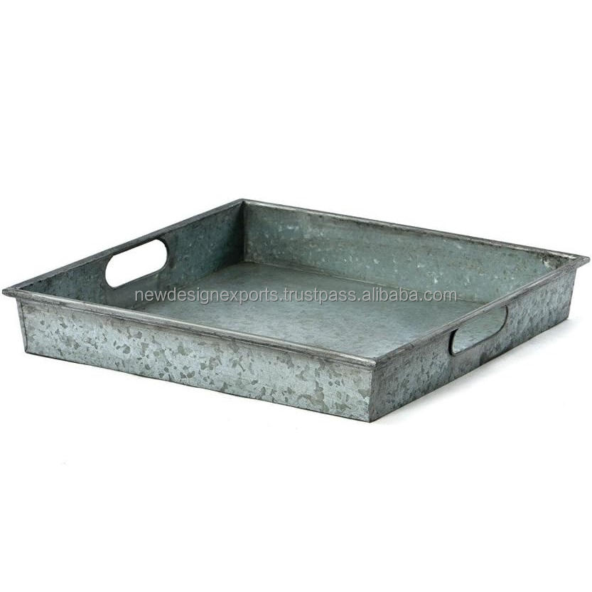 Plateau en métal galvanisé carré en aluminium avec poignée motif rectangulaire pour la décoration intérieure Hôtels Restaurants de Noël Style artistique