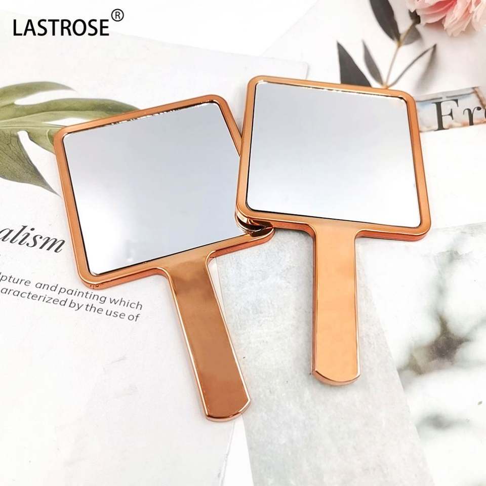 Miroir de maquillage carré à main, miroirs or rose, miroirs argentés, miroir de vanité avec poignée, miroir à main pour filles