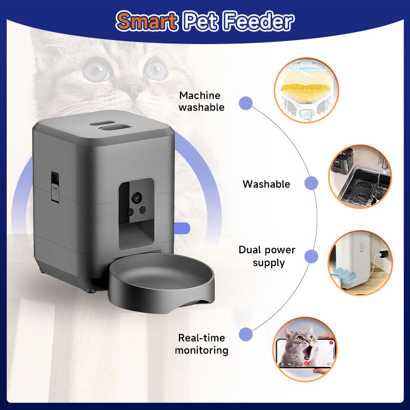 Distributeur intelligent de nourriture pour animaux de compagnie avec écran LCD, contrôle à distance Wi-Fi, programmable et quantitatif pour l'alimentation des chats/chiens