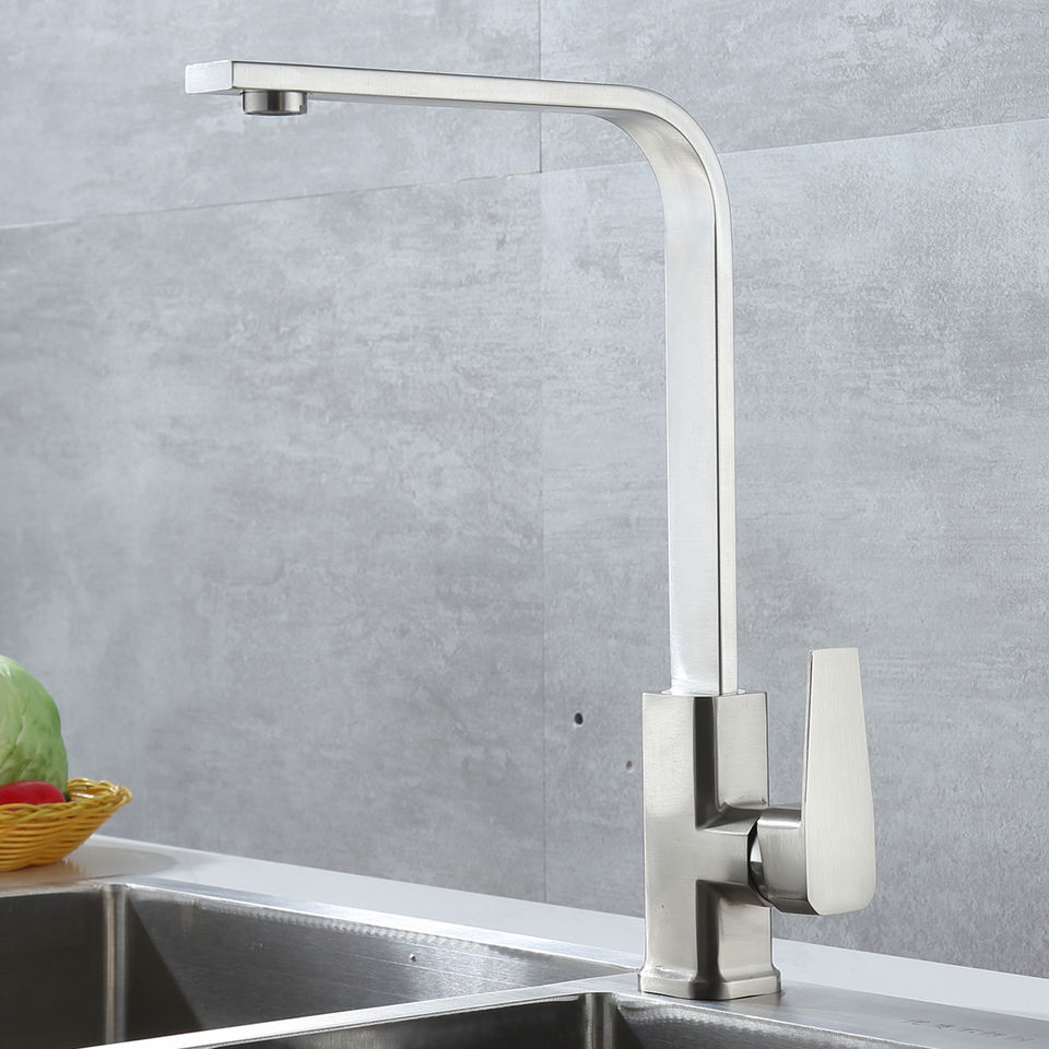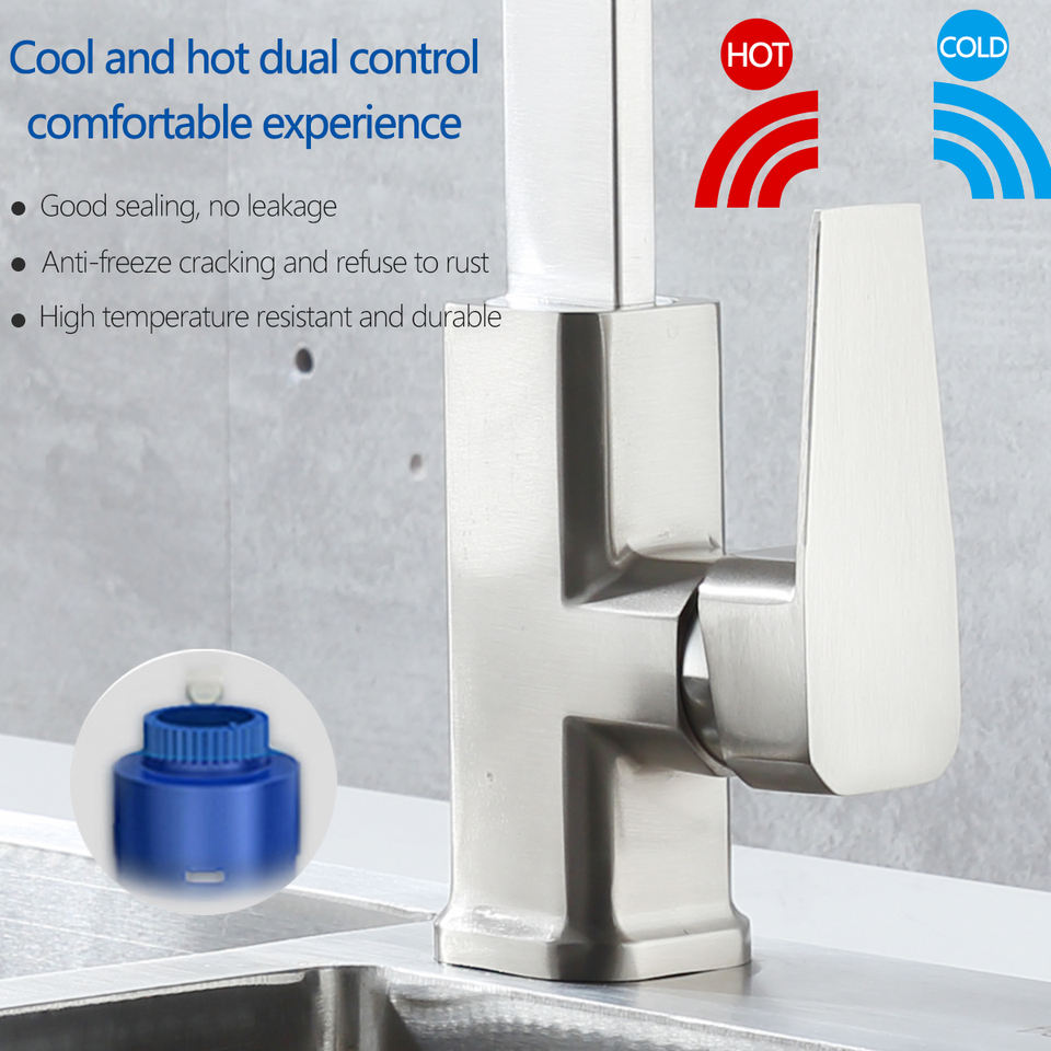 Robinet de cuisine carré noir mat/Chorme évier de cuisine chaud et froid mitigeur à Rotation de 360 degrés robinet monté sur le pont avec filetage en téflon