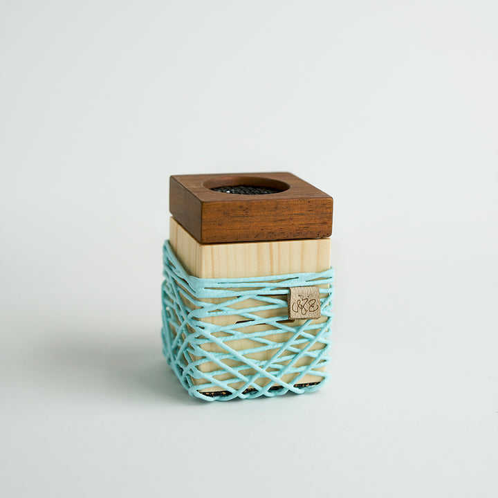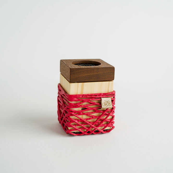 Brûleur d'encens aromatique écologique en bois de mangue carré avec fil décoratif rose, design artisanal et couvercle amovible