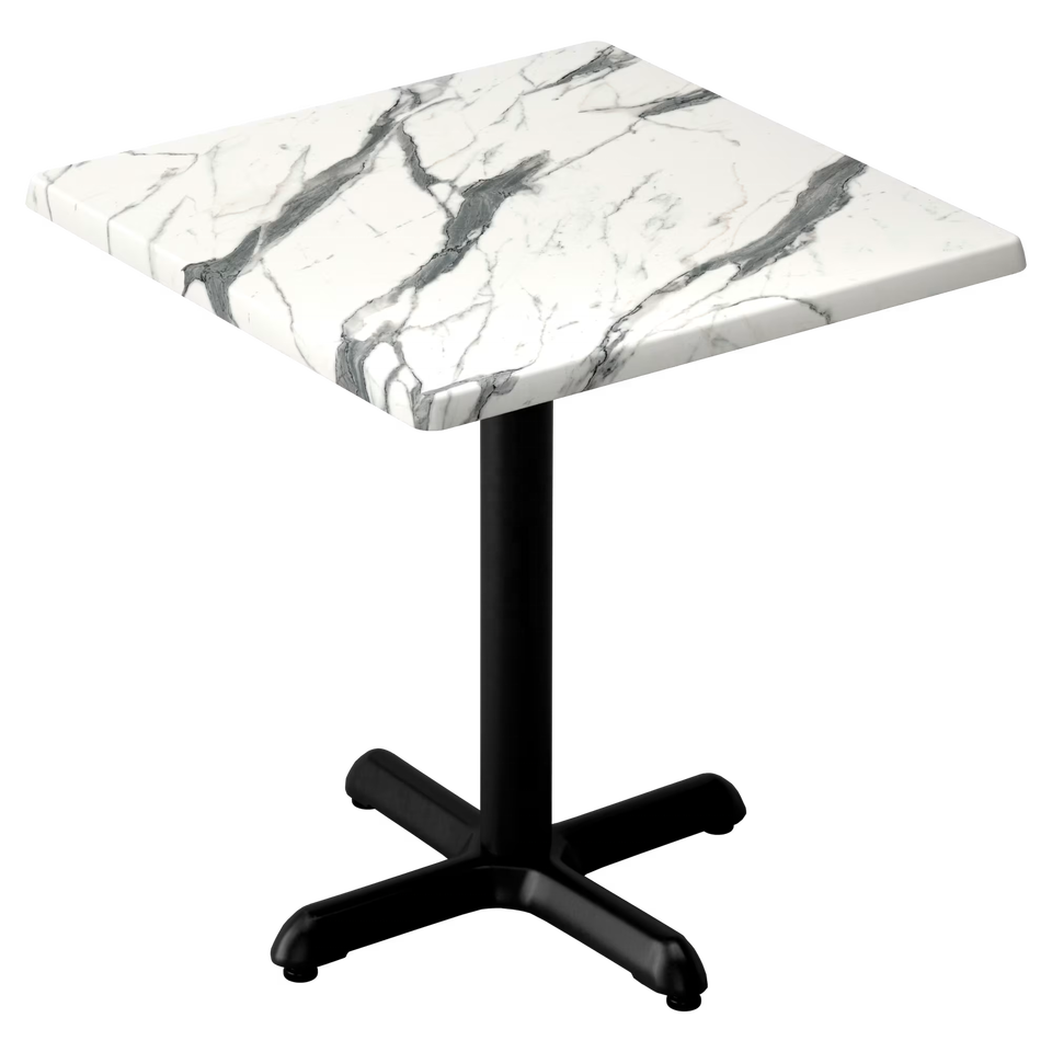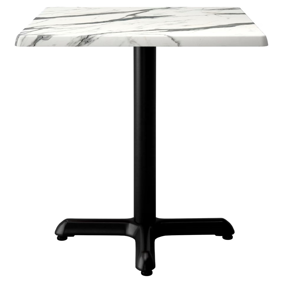 Table de bistrot carrée avec plateau en marbre et base en métal noir, table de salle à manger moderne pour café et restaurant, mobilier commercial