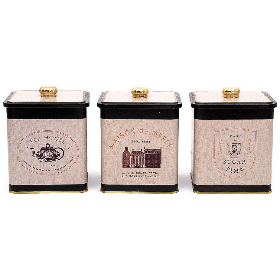 Coffret carré en métal 120x120mm (3Pcs) Poignée à bouton Vintage Café-Inspiration Lin Texture Design Design Azura