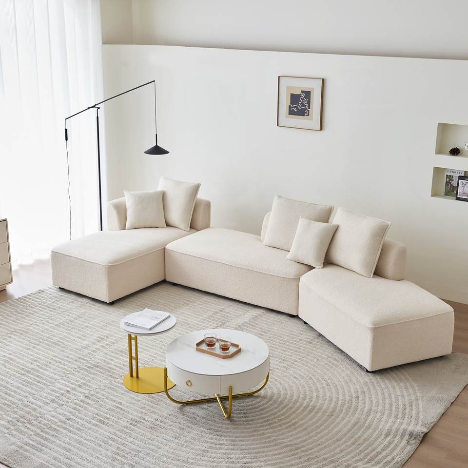 Ensemble de canapé modulaire carré avec méridienne, canapé moderne surdimensionné rembourré, 2 coussins décoratifs, salon beige