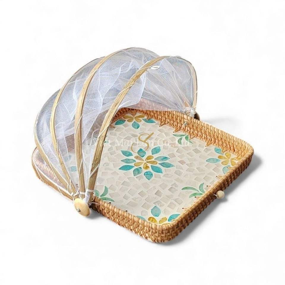 Square Mother of Pearl Classic Food Cover Handmade Natural Shell for Food Protection Serving Table and Interior Decor Vietnam
