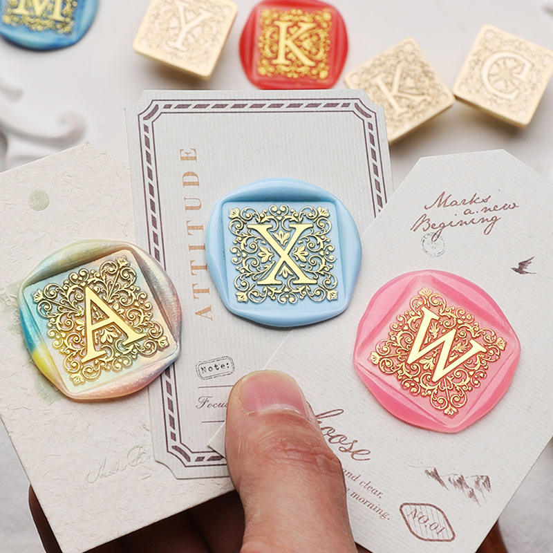 Sceaux à cire à motif carré, série de 26 lettres anglaises, têtes en cuivre pour la décoration de journaux et d'histoires, tampon standard