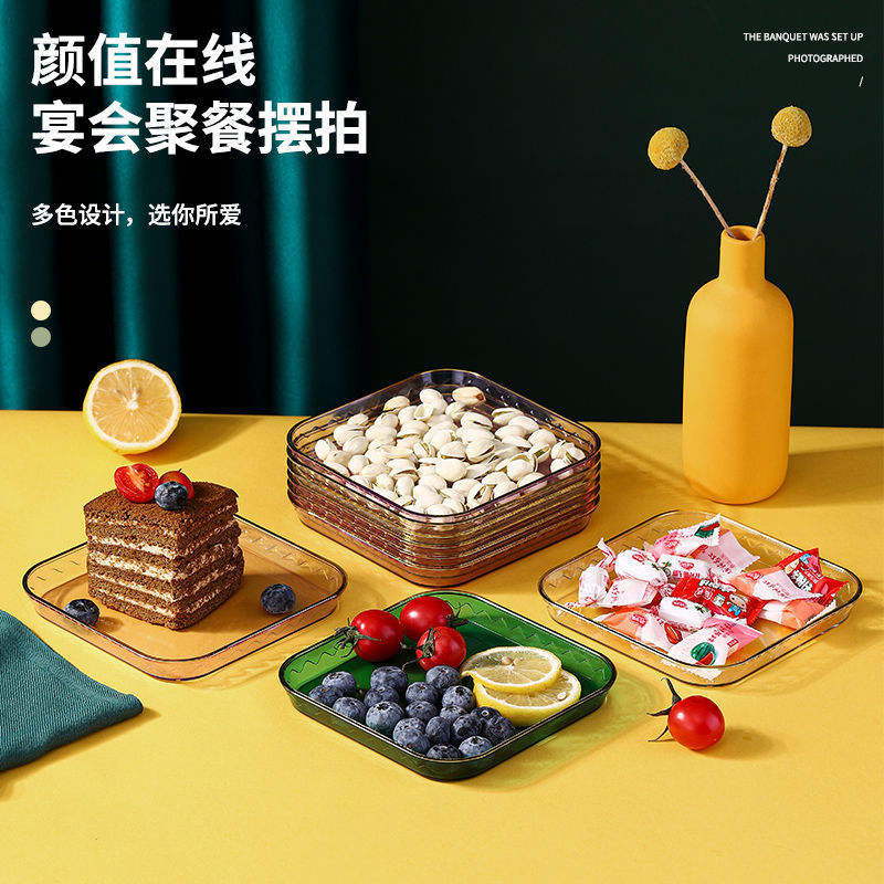 Assiettes carrées en plastique pour desserts, couleur unie, style moderne et minimaliste, pour fruits, collations, usage domestique, vaisselle de fête