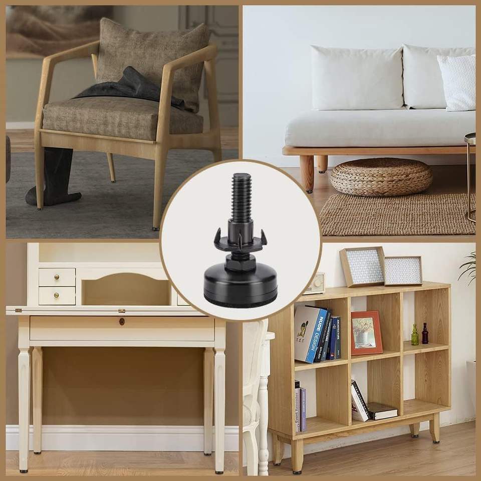 Patins de nivellement réglables en plastique carré, robustes, antidérapants, durables, avec base en acier au carbone et nylon