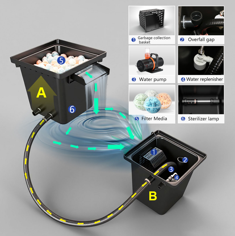 Kits carrés de déversoir de cascade en plastique avec média filtrant écologique et lampe UV pour étang de jardin d'eau Koi