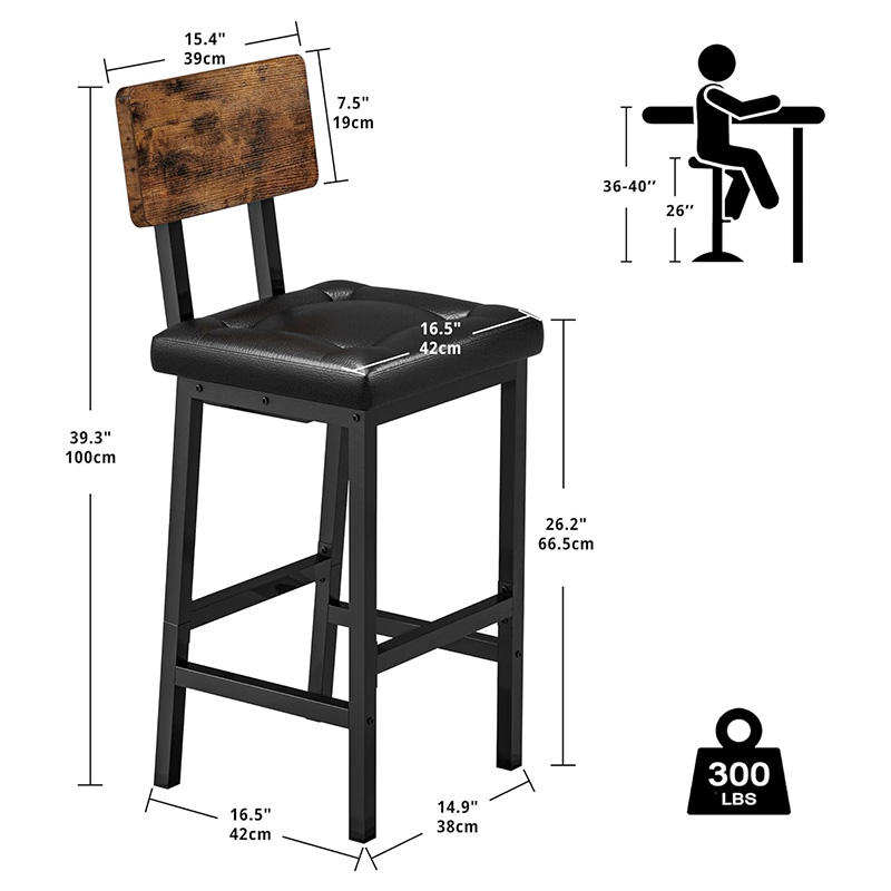 Tabouret de Bar Rembourré Carré en Pu avec Dossier et Pédales Tabouret Rembourré Épais pour Comptoir de Cuisine Bar Lot de 2