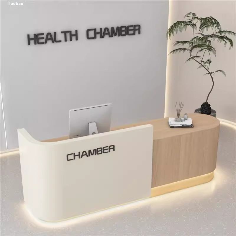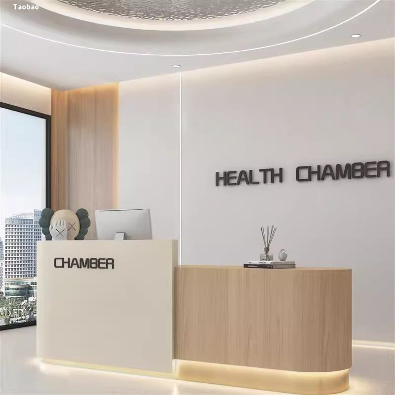 Comptoir de réception/bar/caisse moderne de luxe en bois, de forme carrée/rectangulaire, pour hôtel, hôpital, centre commercial, salon de beauté, formation en coiffure