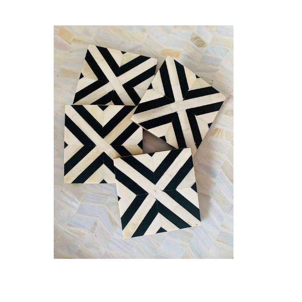 Sous-verre en forme de carré avec incrustation d'os sous-verre pour boissons thé café avec support ensemble de 4 pièces décoration moderne sous-verre fait maison