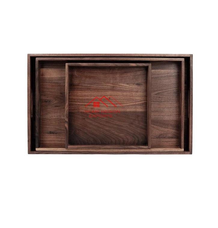 Plateau de service en métal de forme carrée à l'aspect attrayant fait à la main dans un ensemble de 3 tailles