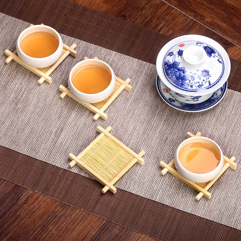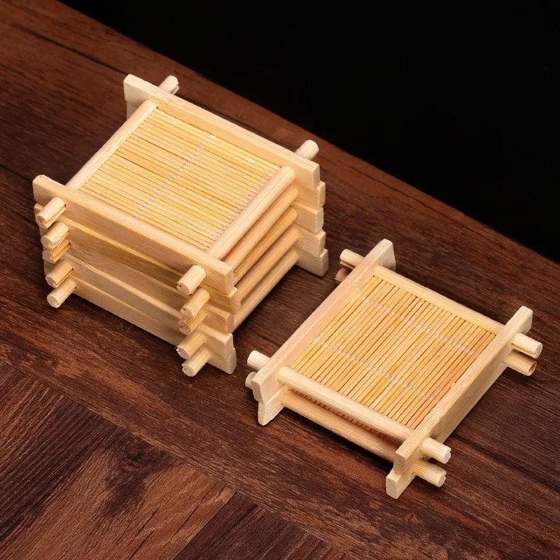 Tapis de tasse en bambou de forme carrée naturel