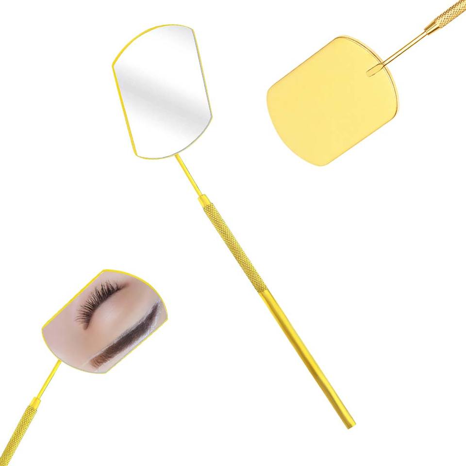 Miroir à cils carré doré en acier inoxydable pour extensions de cils, outil de greffage manuel par Bahasa Pro