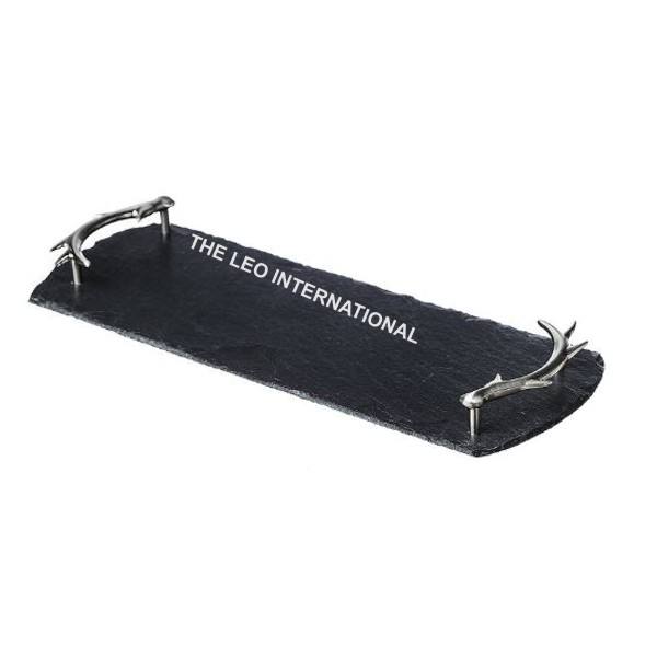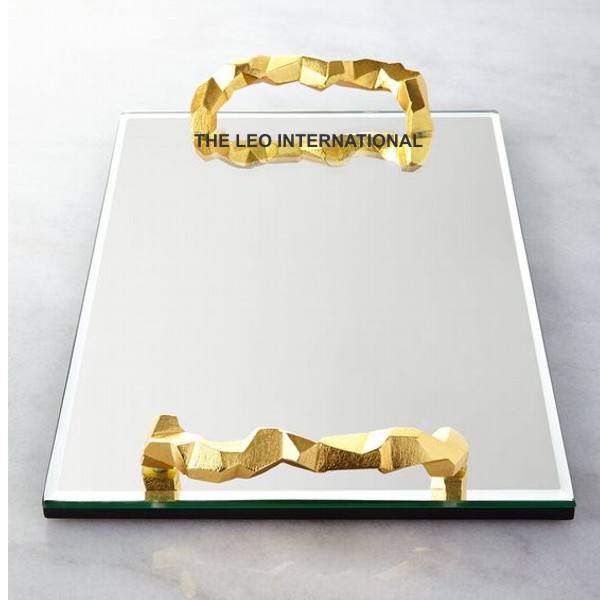 Plateau de service élégant et classique en acier inoxydable galvanisé, forme carrée, texture martelée, design créatif