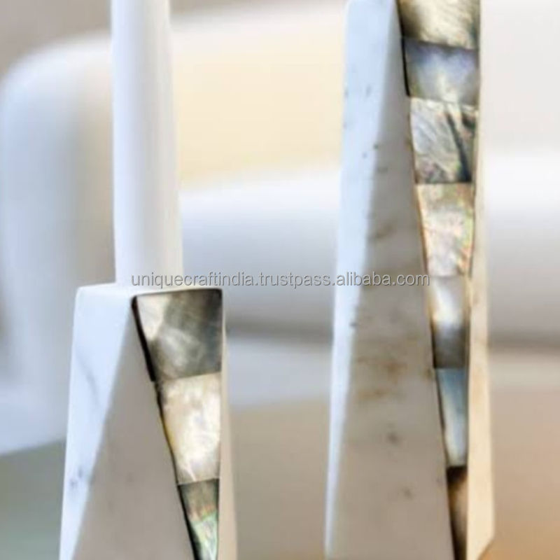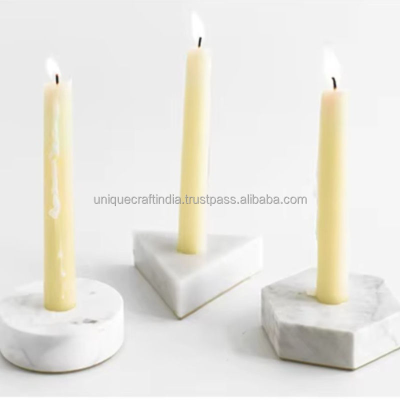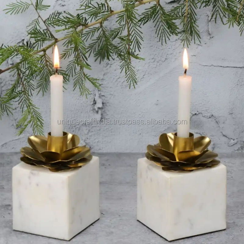 Bougeoir en marbre de forme carrée avec incrustations en métal Support décoratif géométrique de luxe fait à la main pour la maison, le bureau et les salles à manger