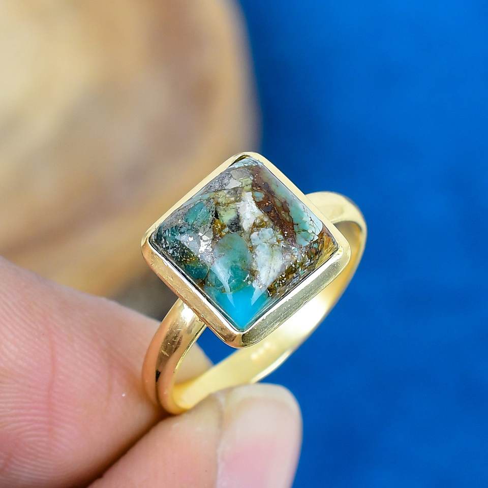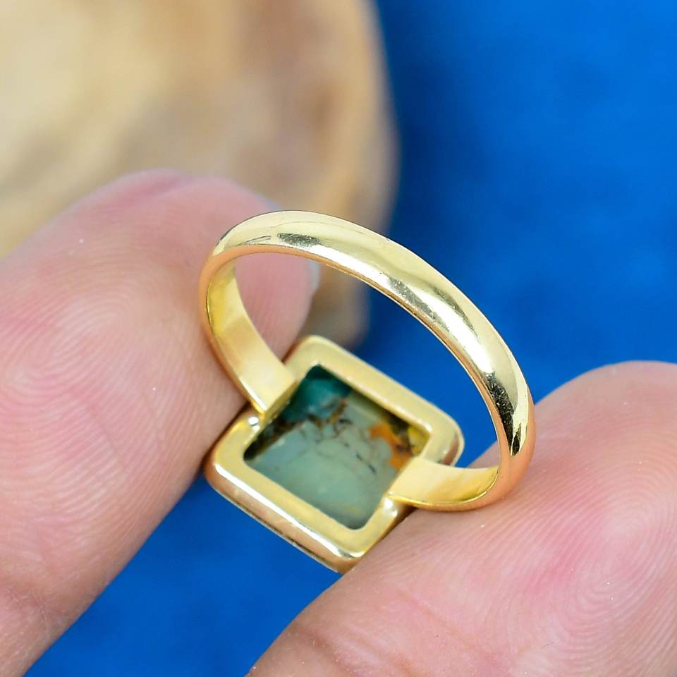 Bagues en pierres précieuses de turquoise naturelle de forme carrée, plaquées or 18 carats sur argent sterling 925