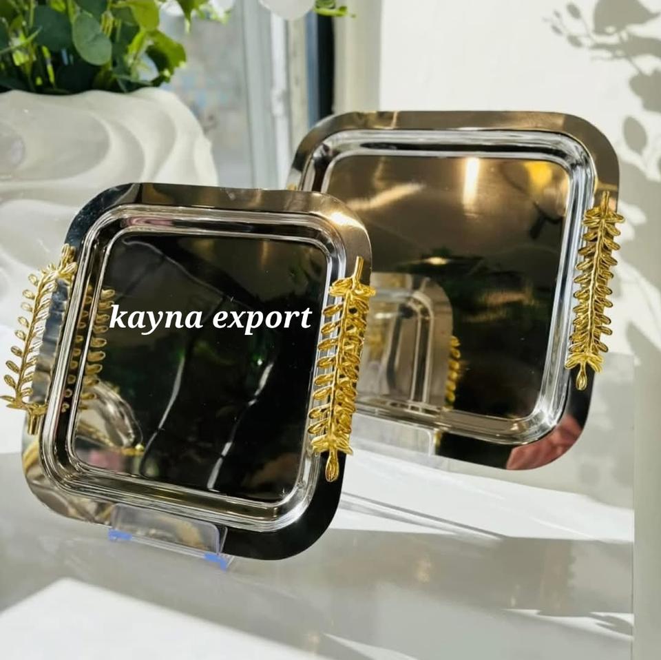 Plateau de service alimentaire rond en acier inoxydable au design moderne, artisanat métallique pour mariages et occasions du Ramadan