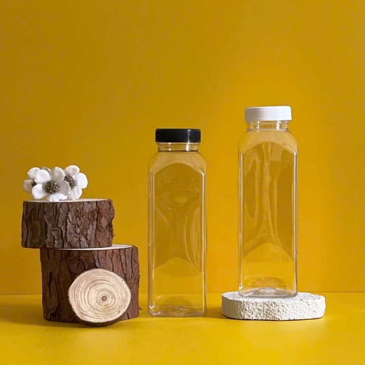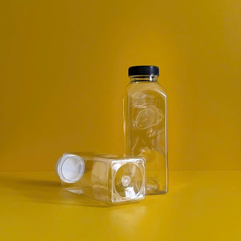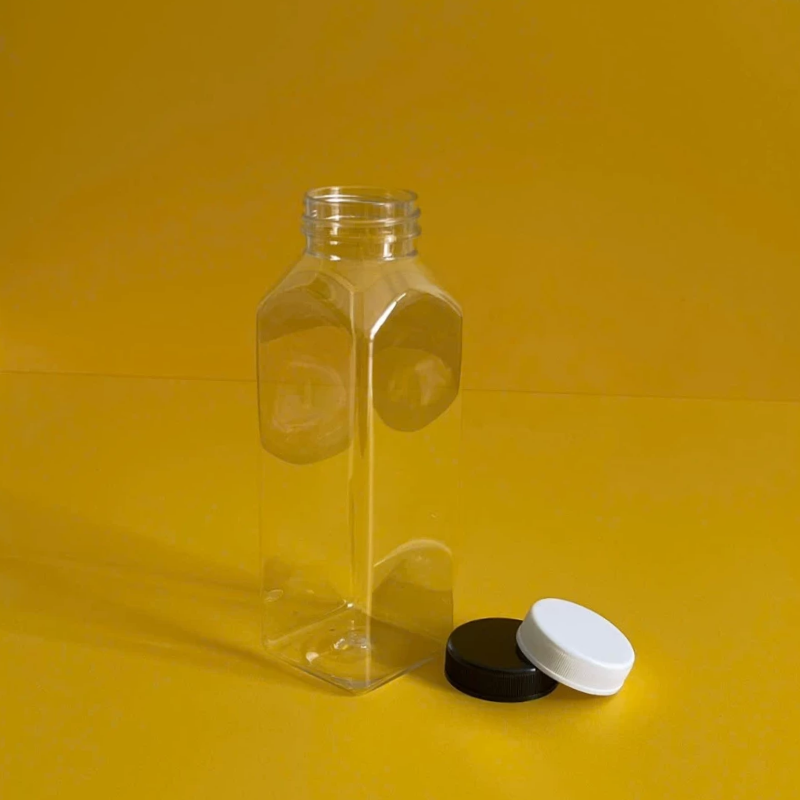 Bouteille de boisson en plastique transparente PET de forme carrée de 330ml avec bouchon à vis pour jus et eau Fabrication écologique Vietnam