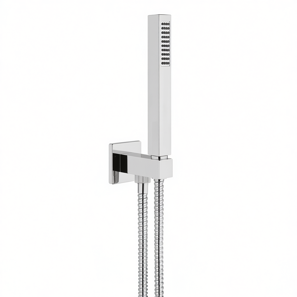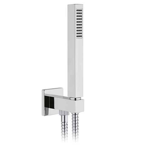 Ensemble de douche carré avec flexible et douchette à main chromé, longueur 24 cm, largeur 23 cm, hauteur 9 cm
