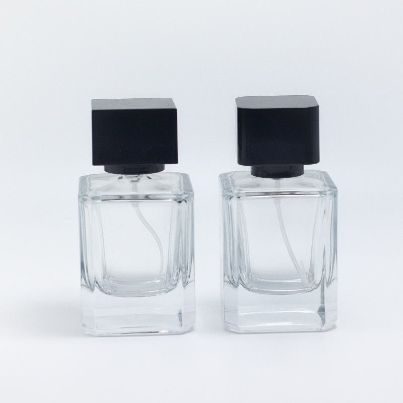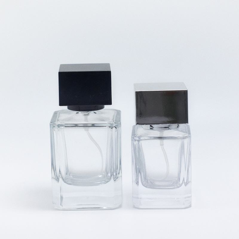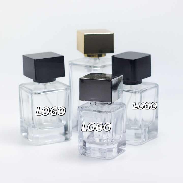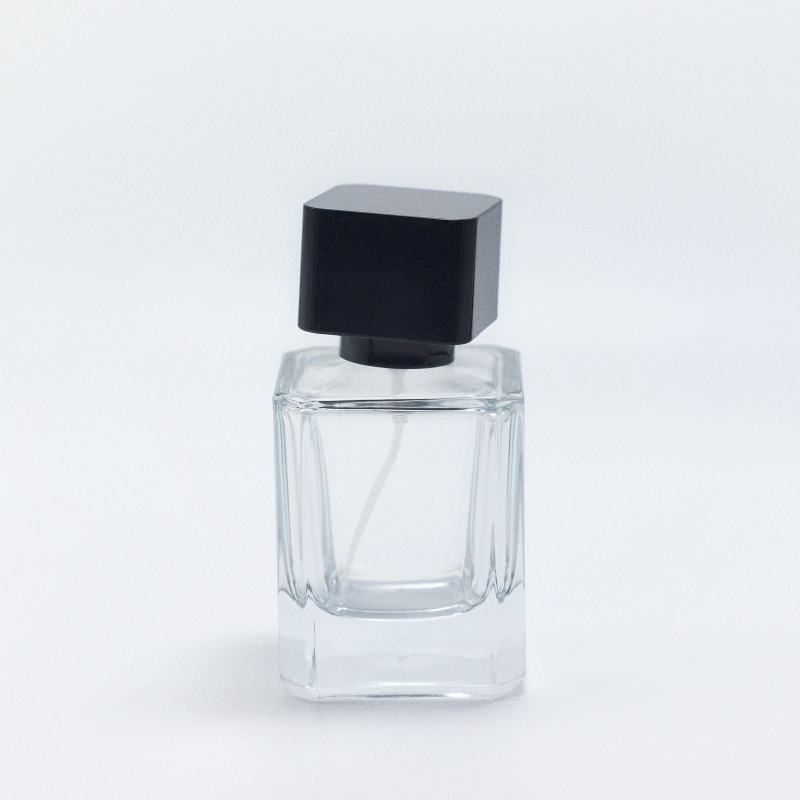Flacon de parfum carré en verre 30ml 50ml 100ml, flacon de parfum cube, flacon de parfum de luxe avec bouchon noir