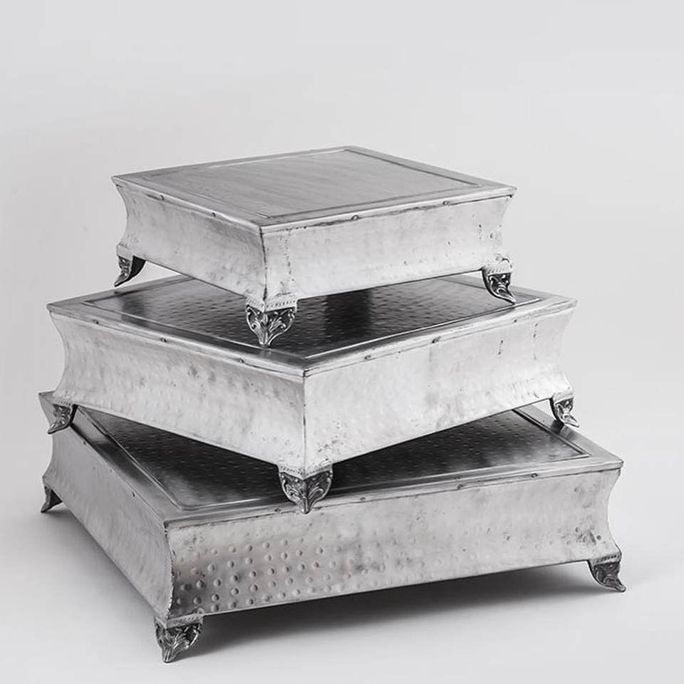 Plateau carré en métal support de gâteau de mariage en métal argenté cupcake base bébé douche plateau à dessert