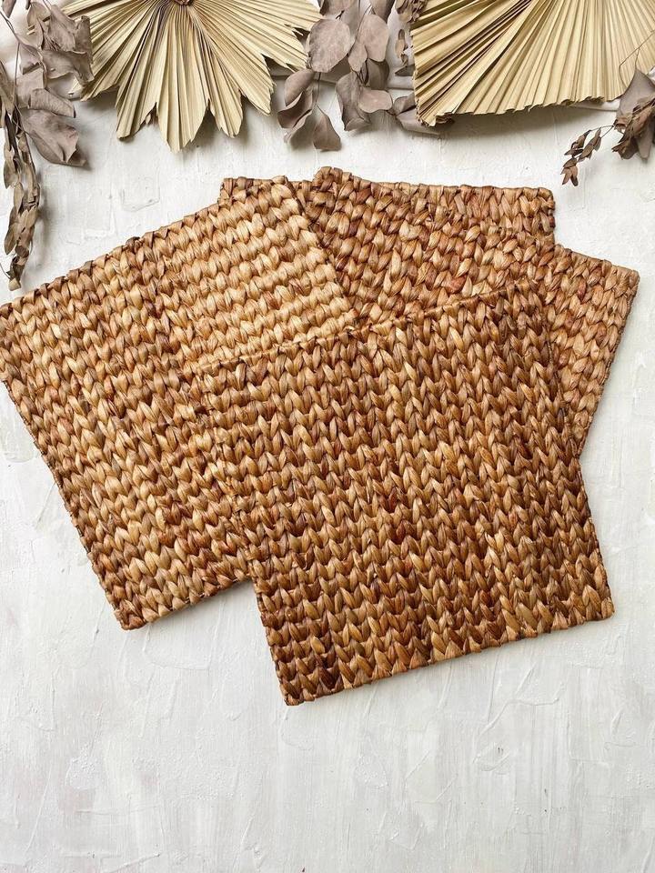 Square Water Hyacinth Placemat:Size: D15.4 inch