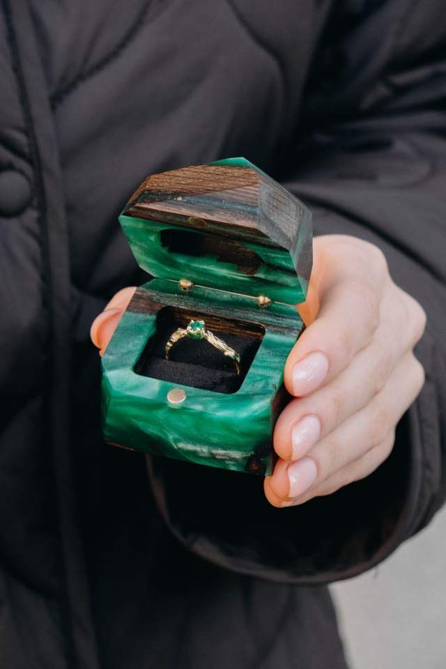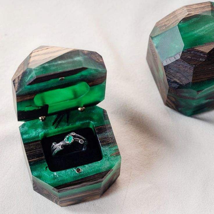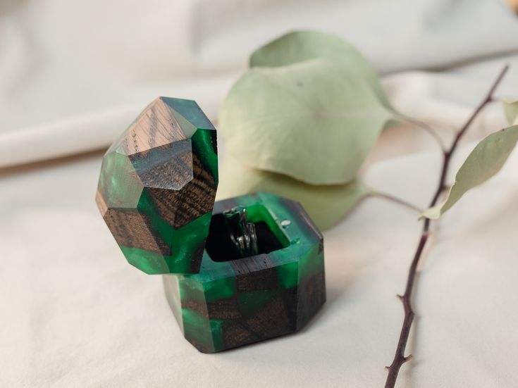 Boîte à alliances carrée en bois avec couvercle en résine époxy, porte-bague, boîte à bijoux