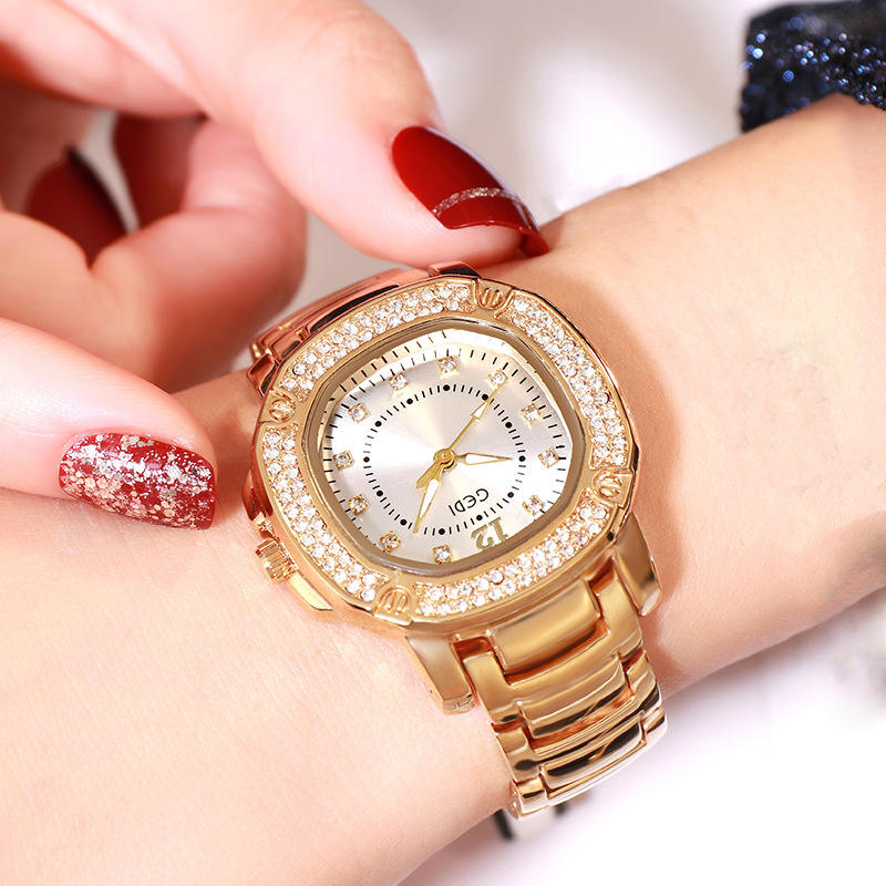 Square alloy women's watch niche design steel band quartz watch trendy wristwatch