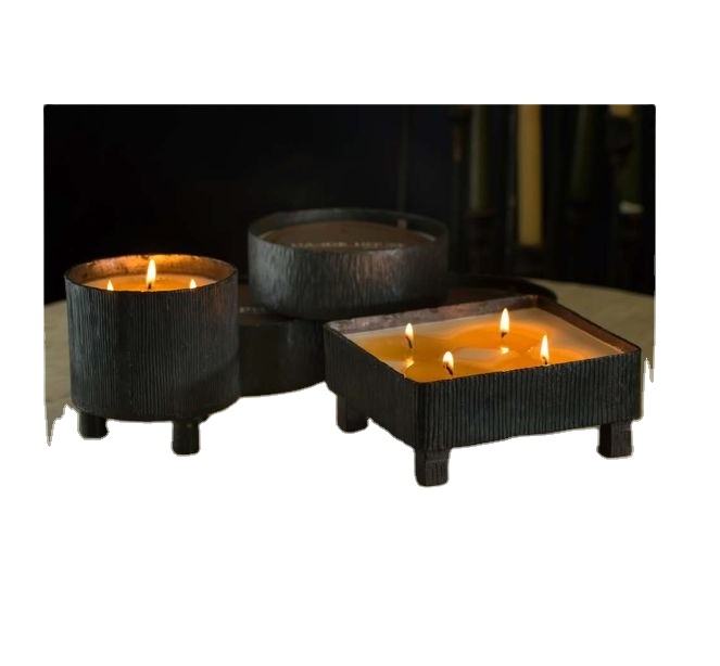 Bougie carrée et ronde en métal bol meilleure vente noir mat avec des jambes uniques décoration de mariage bougie navire