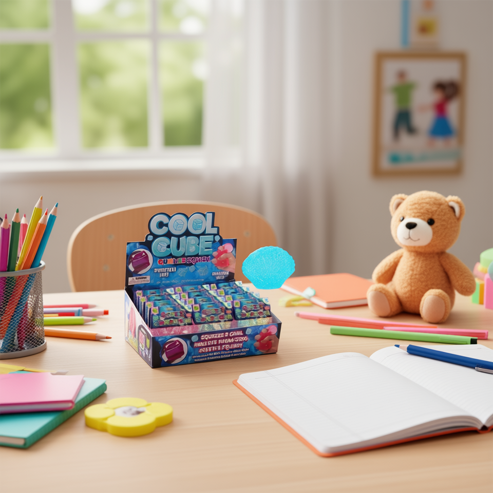 Jouet anti-stress extensible Squeeze Shell Cool Cube Gummy Squish 7x9x3 cm