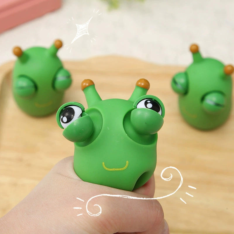 Jouet en silicone anti-stress amusant, peluche souple en forme de ver de chou vert, avec gros œil qui sort, pour la décompression