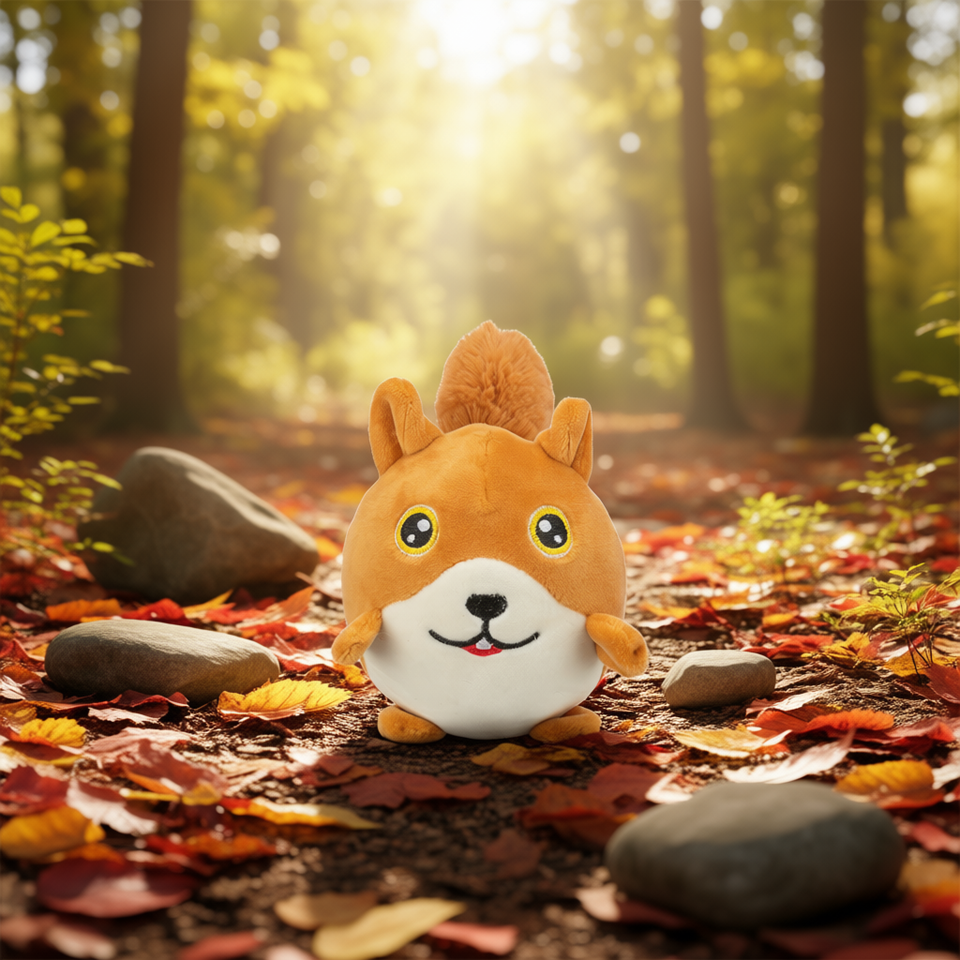 Peluche Écureuil 13 cm, Jouet Interactif Rond et Doux pour Animaux de Compagnie