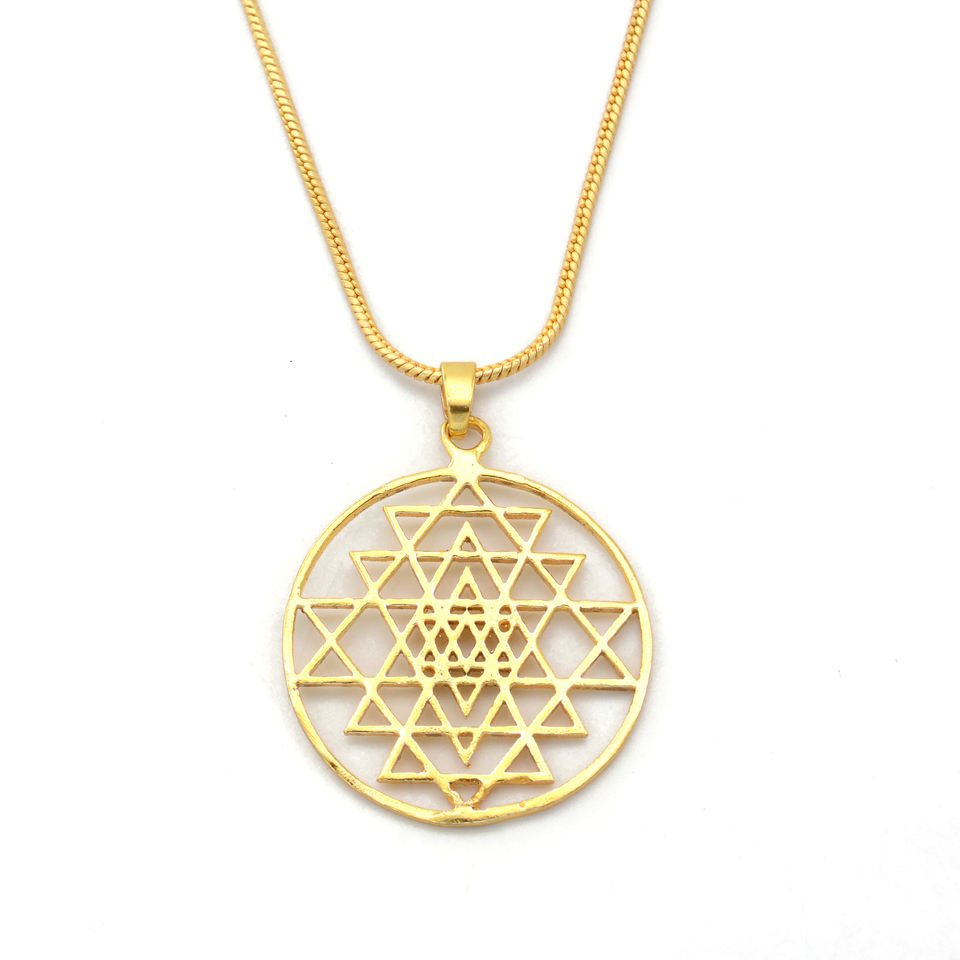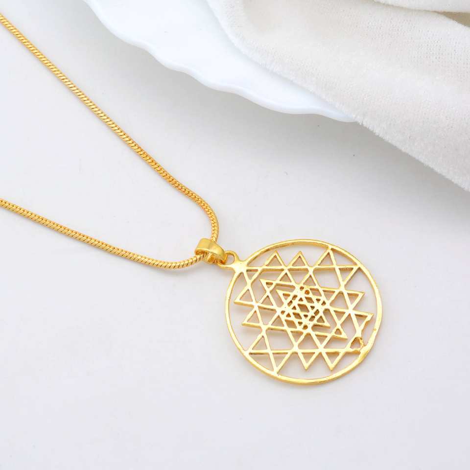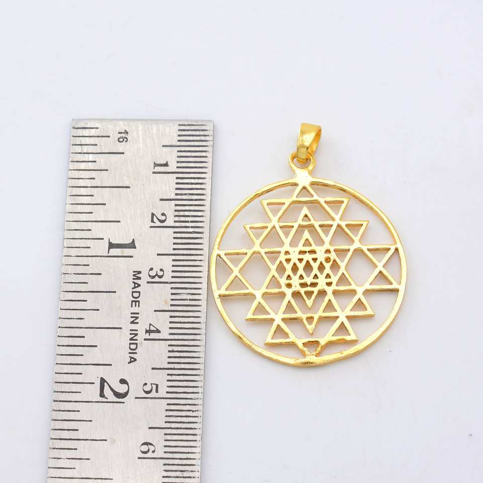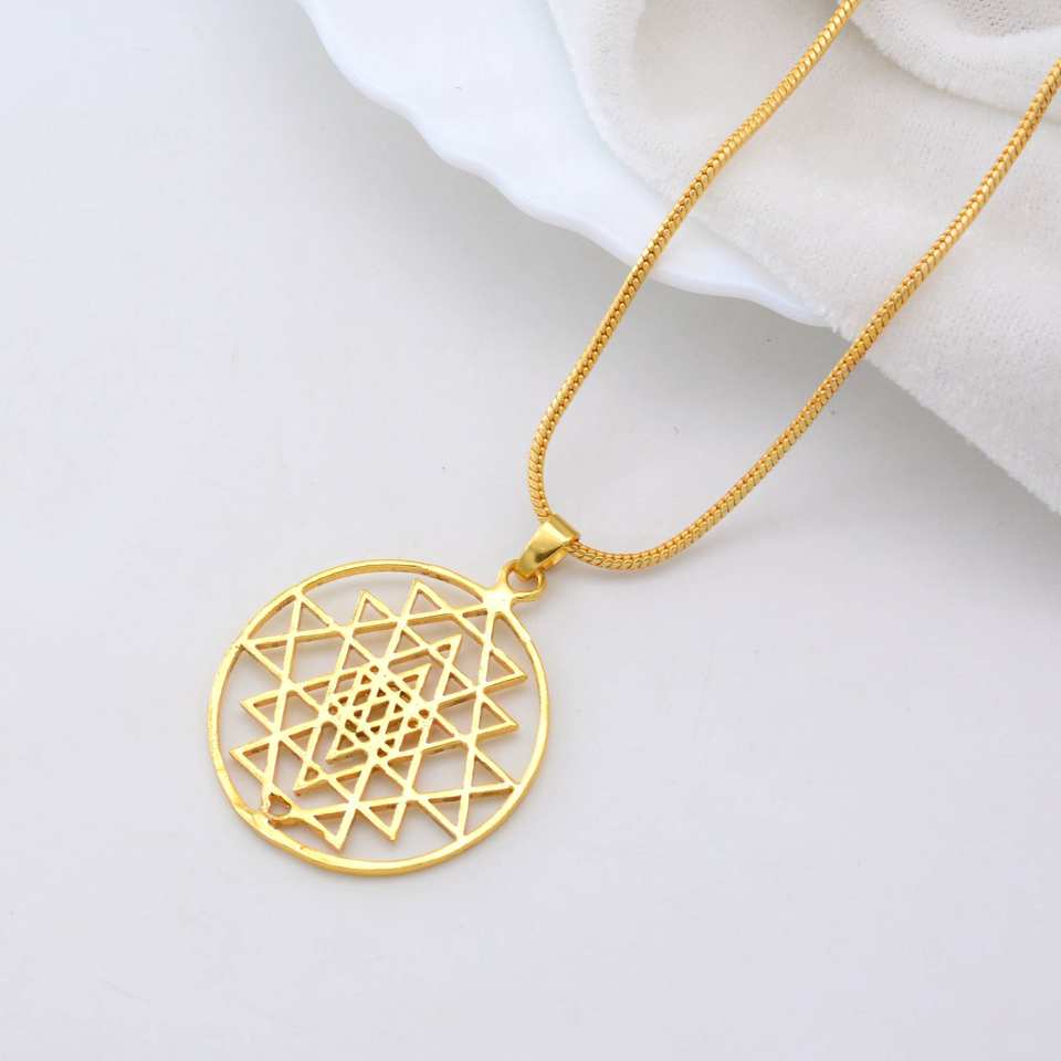 Sri Yantra Pendant Brass Gold Plated Cute Unisex Sacred Geometry Necklace Spiritual Mandala Amulet Meditation Energy Healing