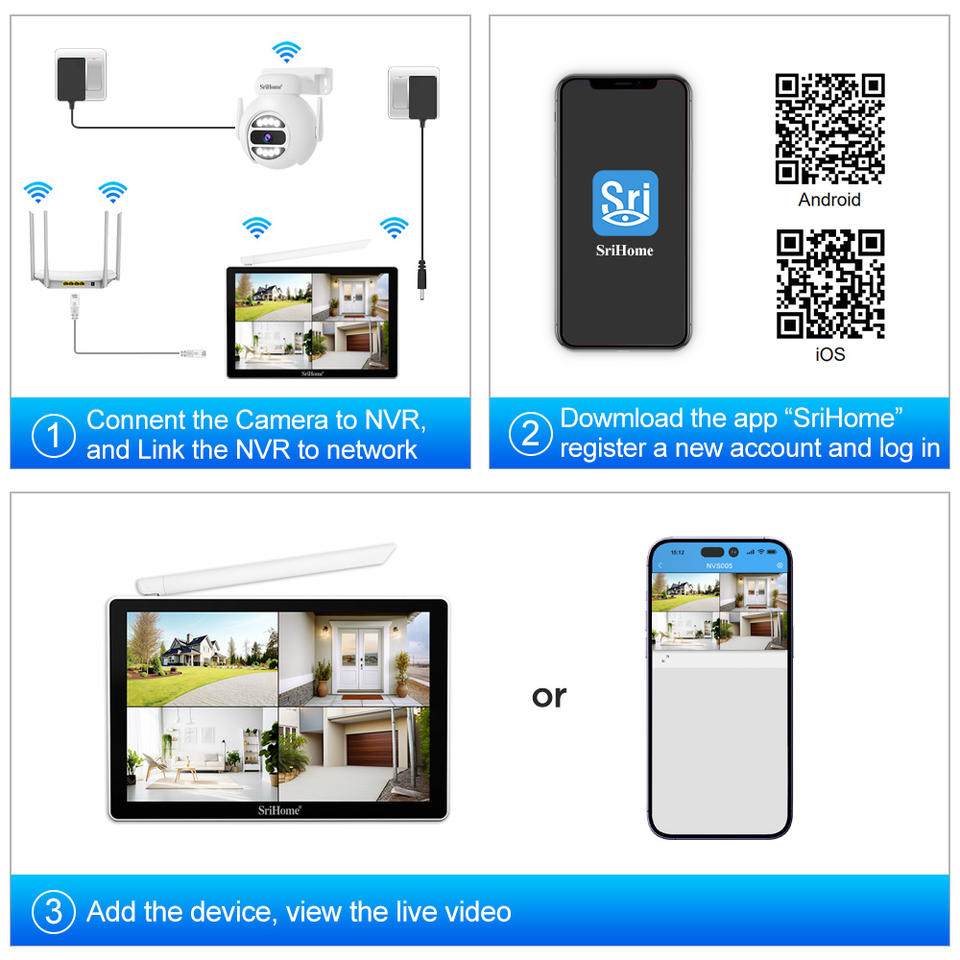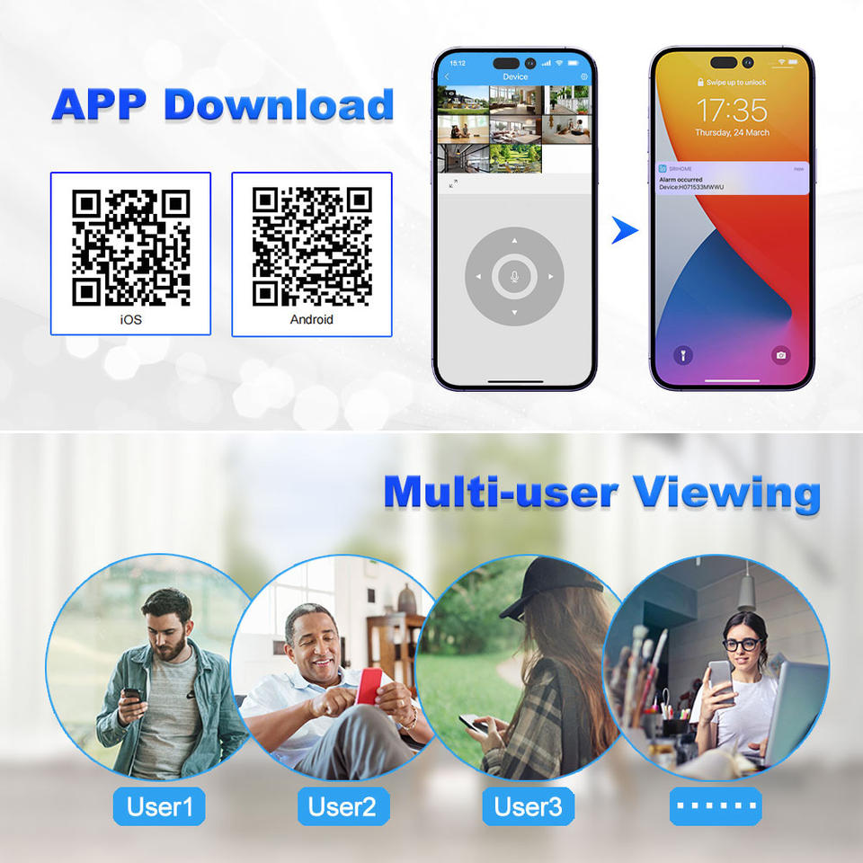 Srihome HD 5MP Mini caméra de sécurité dôme détection humaine PTZ couverture panoramique Wifi IP alimenté par batterie carte mémoire CMOS