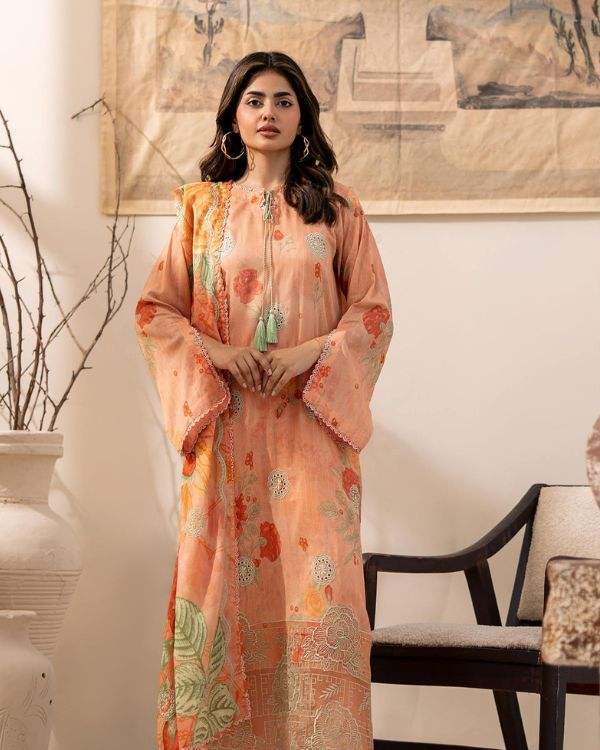 Costume en tissu lawn imprimé numérique de qualité supérieure de la collection Ssumaira avec devant brodé