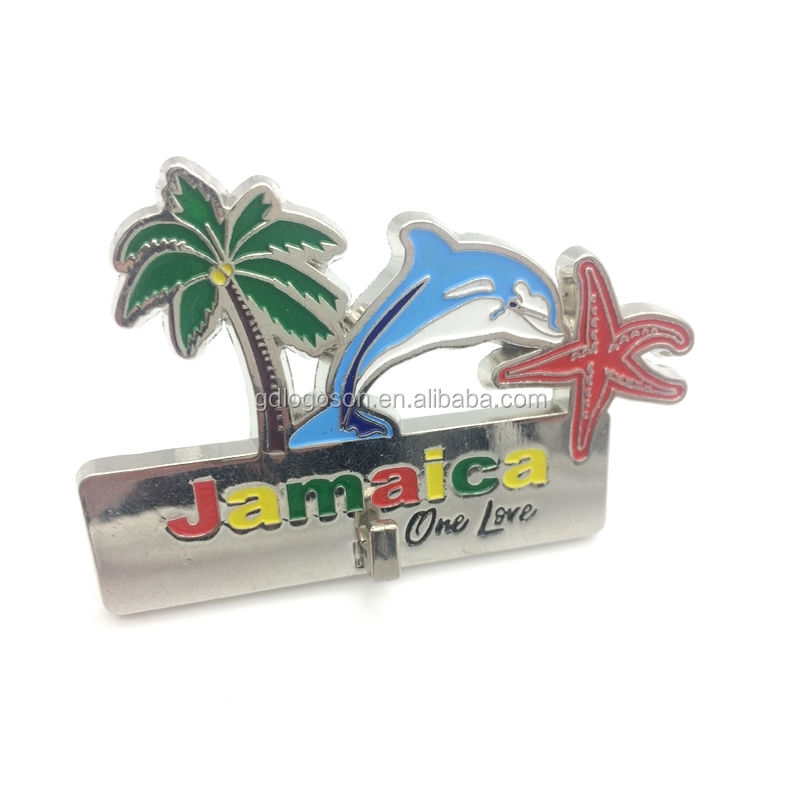 Collection de souvenirs de voyage de Saint-Martin Aimants en émail métallique Palmier de plage Aimants de réfrigérateur de l'île des Caraïbes Logo personnalisé