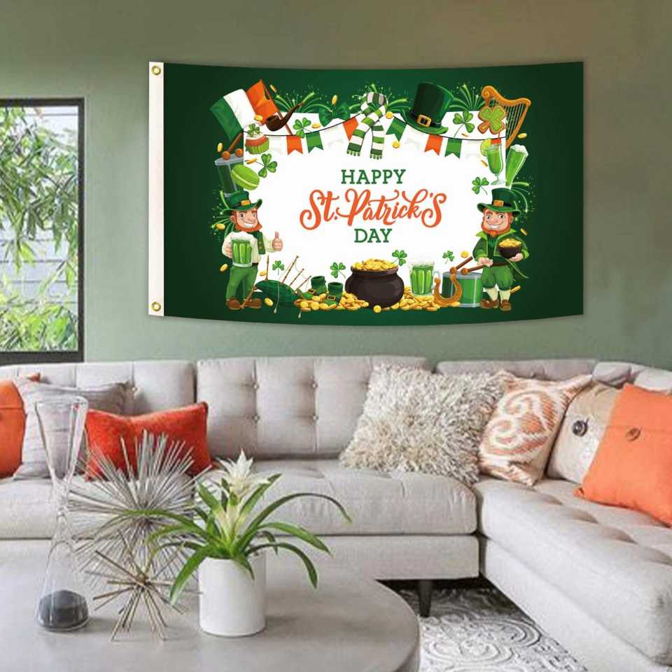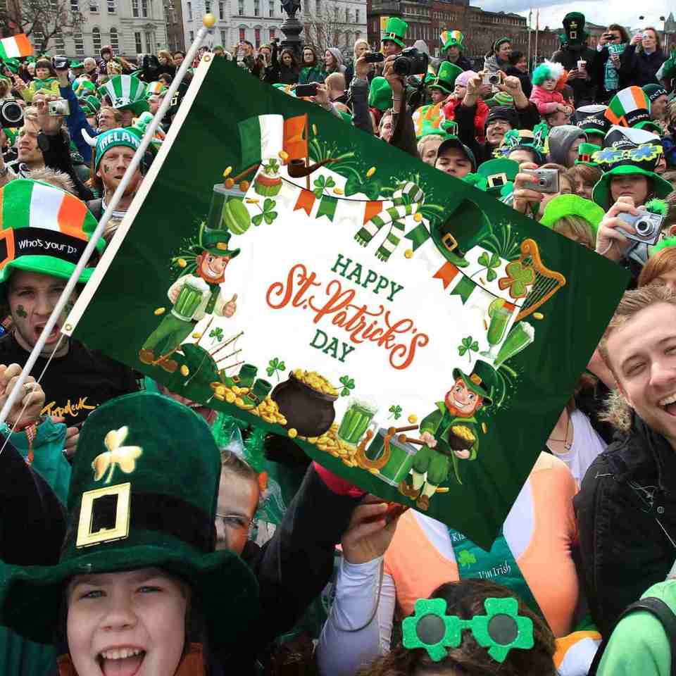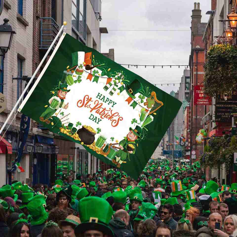 Drapeau Fanion Double Face 3*5FT pour la Fête de la Saint-Patrick, Bannière en Feutre Trèfle, Technique d'Impression Numérique, Décorations Extérieures pour Cour