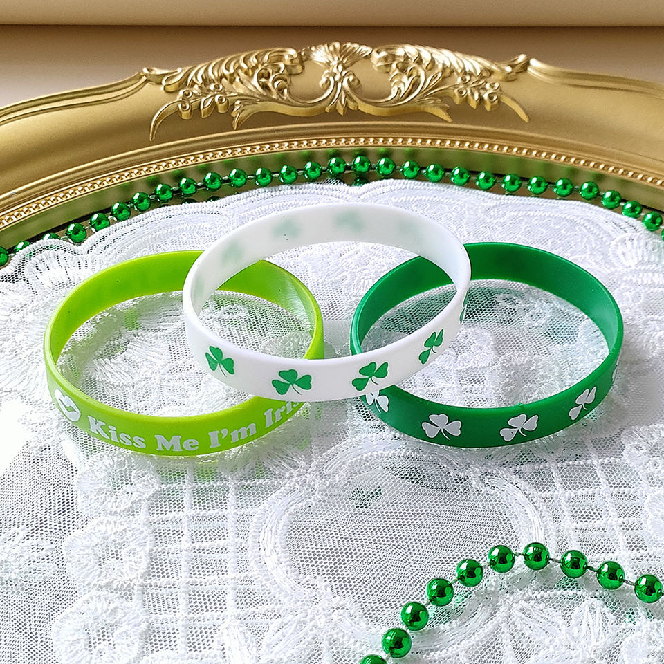 St. Patrick's Day vert trèfle collier de perles en caoutchouc bracelet ensemble trèfle irlandais carnaval fête faveurs enfants adultes accessoires