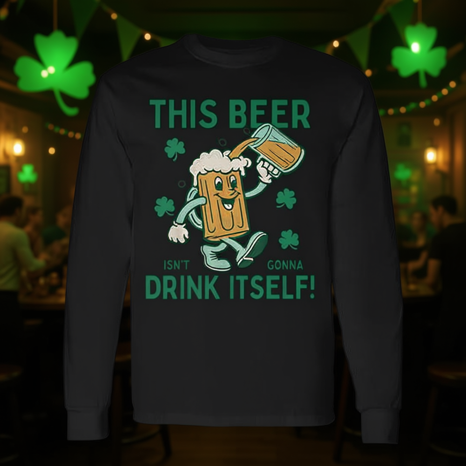 T-shirt à manches longues pour la Saint-Patrick - Cette bière n'aura pas la moindre idée de s'en boire toute seule - T-shirt promotionnel sur le thème de la bière