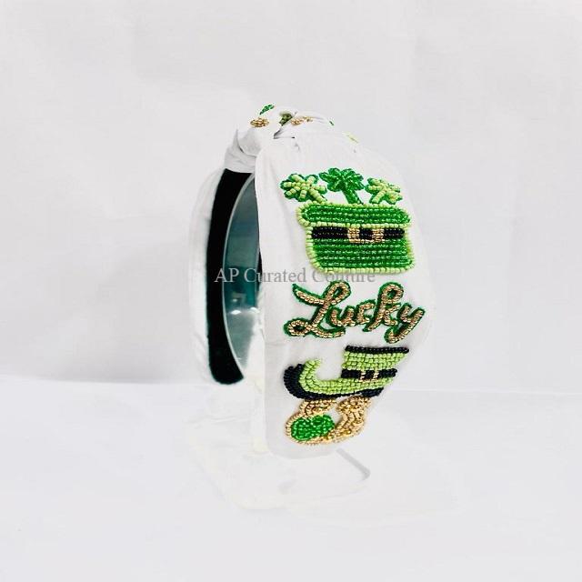 St. Patrick's Day Lucky Shamrock Top Bandeau perlé noué Bandeau perlé en cristal pour les célébrations festives
