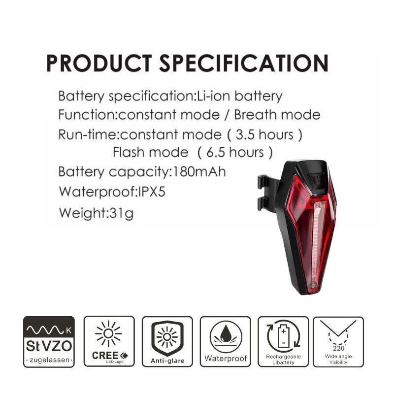 Ensemble de feux de vélo rechargeables par USB StVZO Feux arrière avant et arrière automatiques avec batterie d'alimentation