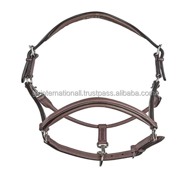 Casque stable de forme anatomique 100% licou de cheval en cuir tanné végétal avec coutures blanches et rembourrage de vache